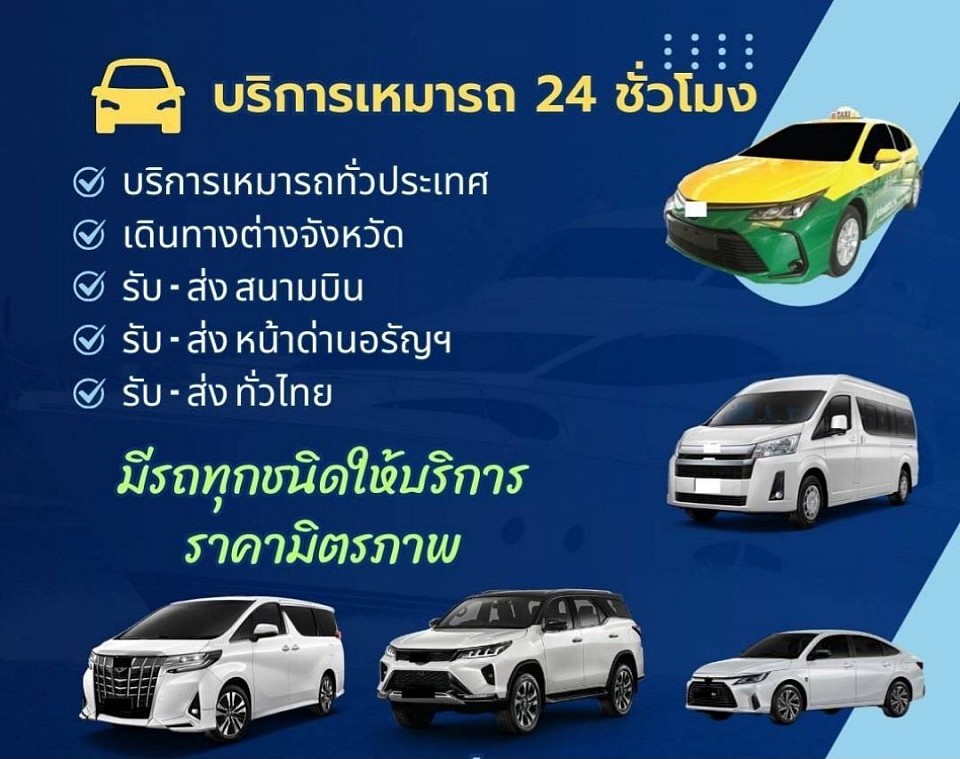 Taxi SaimThailand ให้บริการ รถเช่าพร้อมคนขับ รถยนต์ขนาด 5-7 ที่นั่ง รถตู้ วีไอพี Toyota Camry Toyota Alphard ราคาถูกเหมารถ รับ – ส่ง ที่พัก โรงแรม สนามบิน ออกต่างจังหวัด ไปเที่ยว ไปทำงาน ไปธุระ เหมาวันหรือเหมาชั่วโมง(4 ชมขึ้นไป) หรือใช้รถเพื่อการเดินทางและท่อง อยูที่ไหนพื้นที่ใด เรียกใช้บริการได้ตลอด 24 ชม.